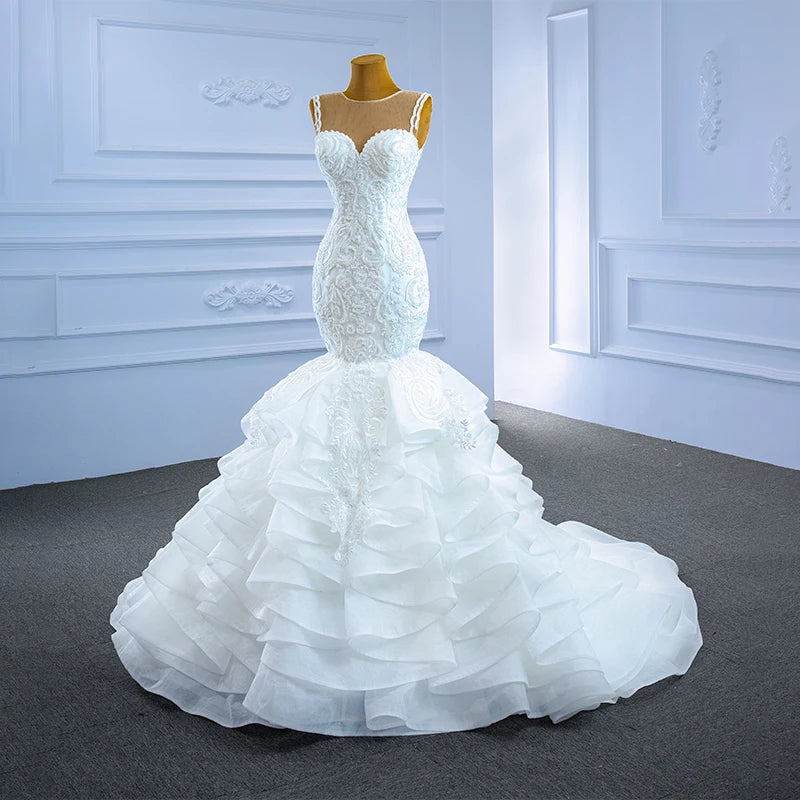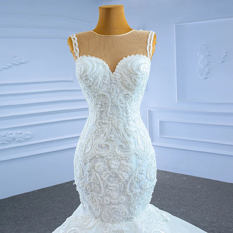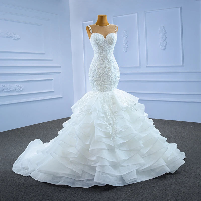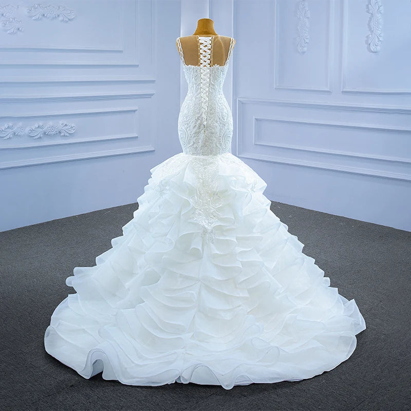 Customized White Fish Tail Lace Wedding Dress