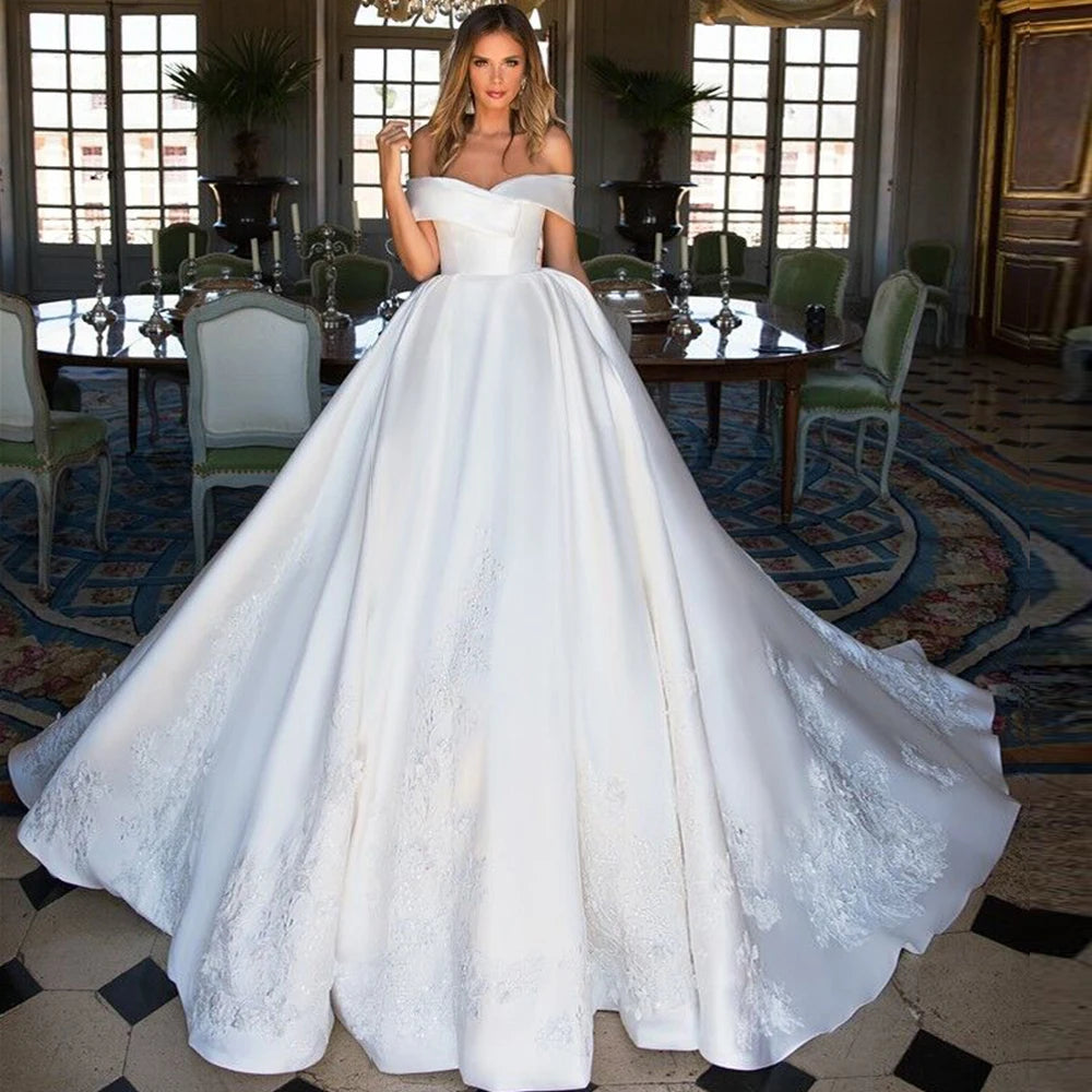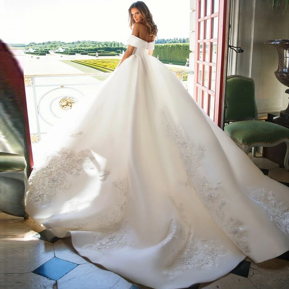 France Satin Short Sleeve Ball Gown Wedding Dress