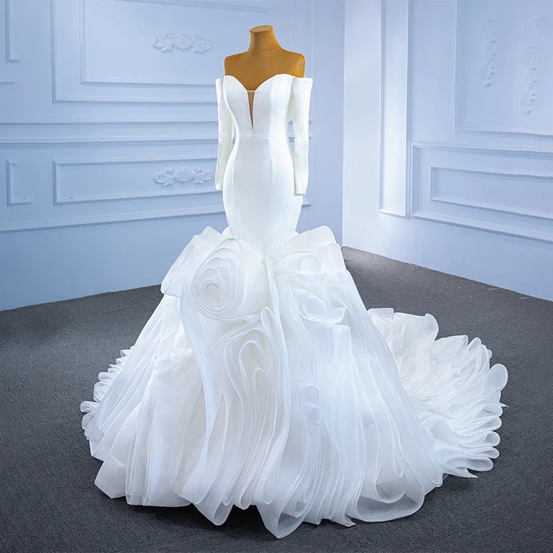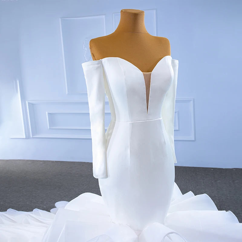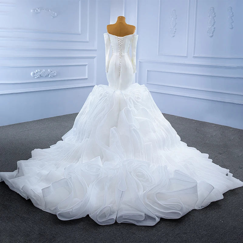 Long Sleeve Backless Frill Fishtail Bridal Dress