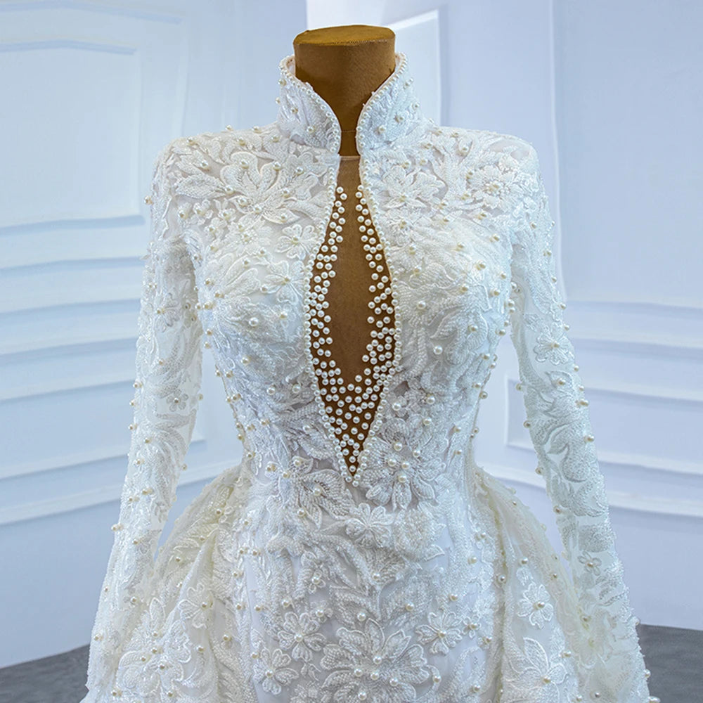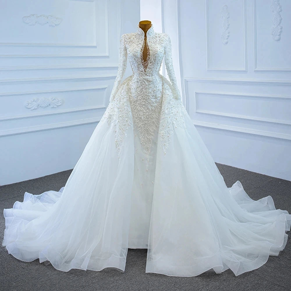 Long-Sleeve Pearls Mermaid Wedding Dresses