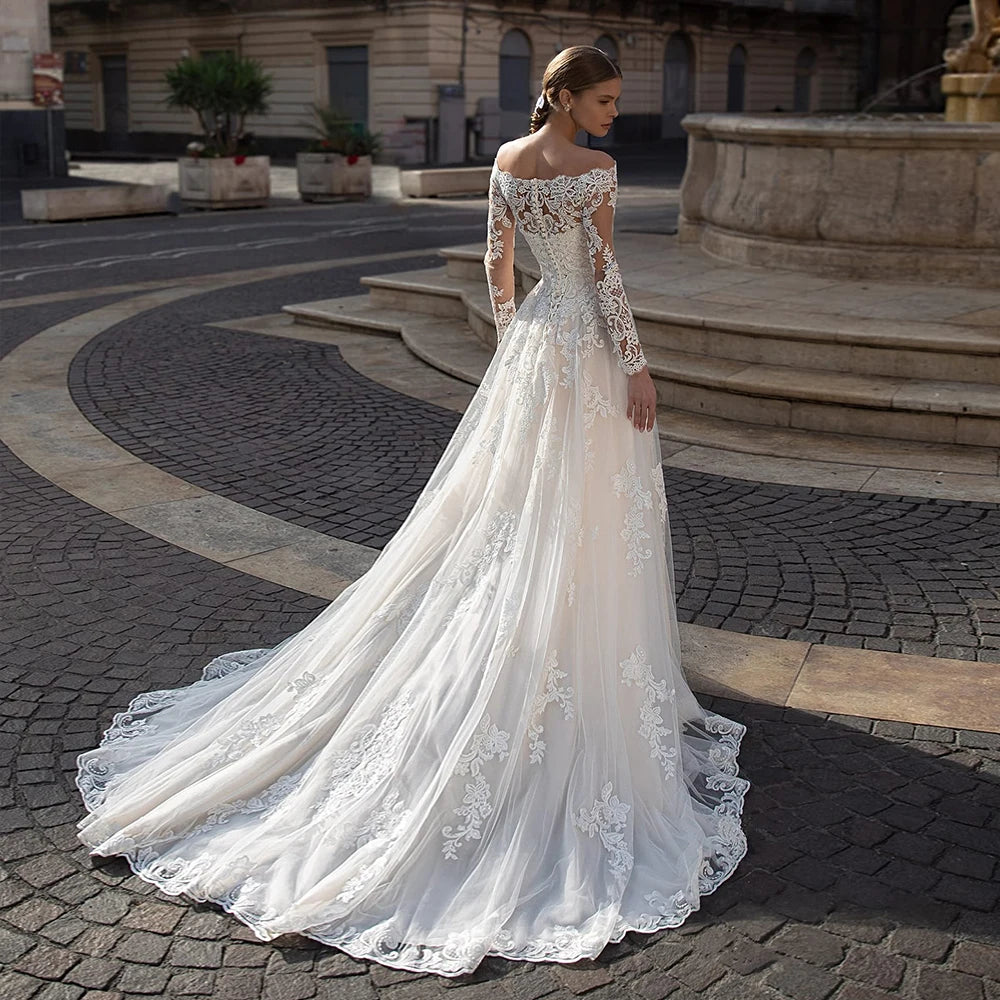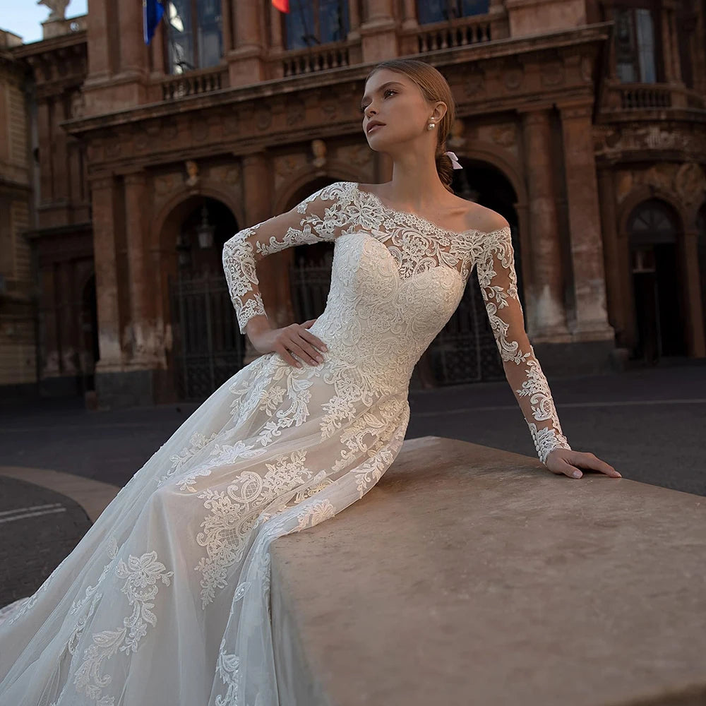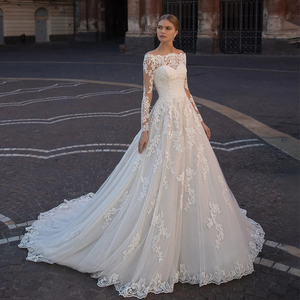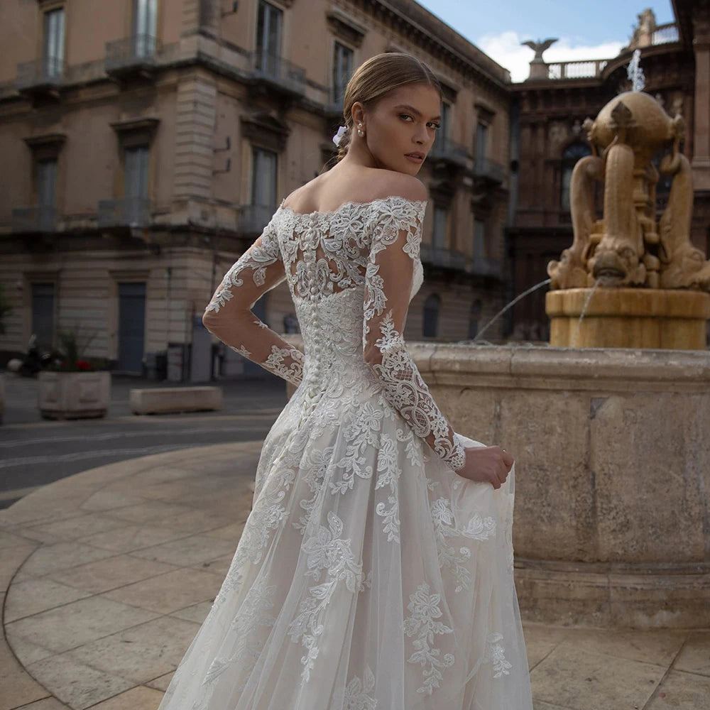 Neck Buttons Up Back Long Sleeve wedding dress