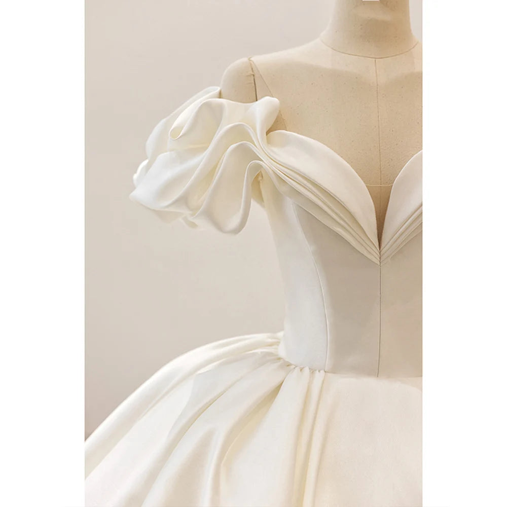 Off The Shoulder Satin Ball Gown Wedding Dress
