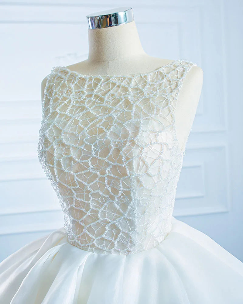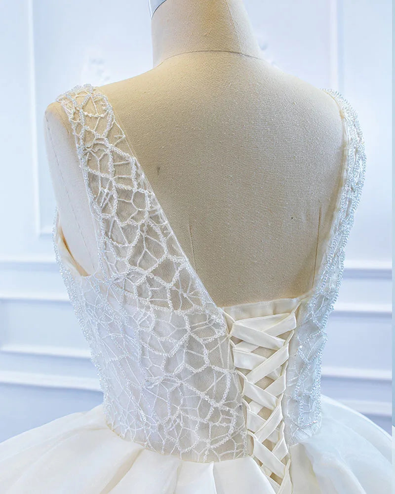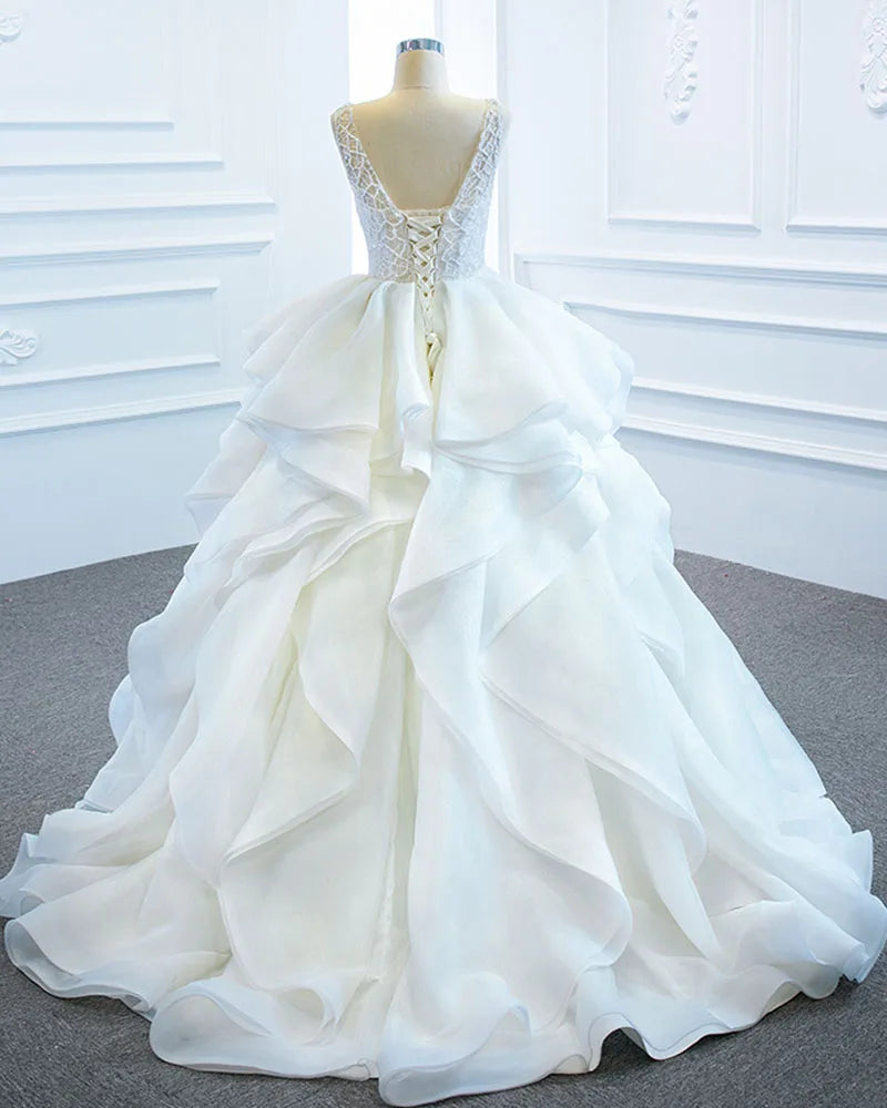 Shiny Beaded Tiered Skirt Princess Ball Gown Wedding